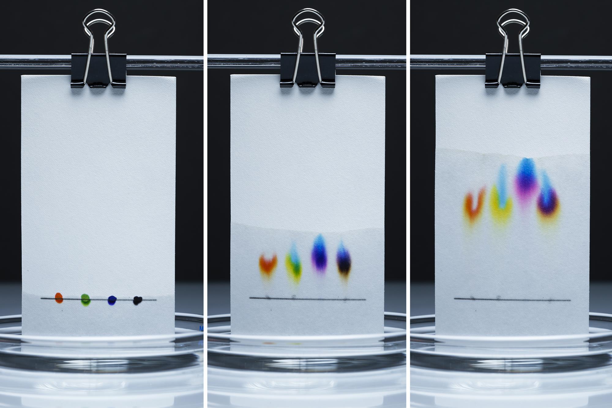 Kromatografisk adskillelse af farvestoffer.
